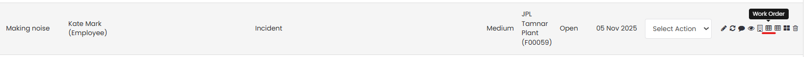3. Click on the Work Order icon for the request with the status Open.