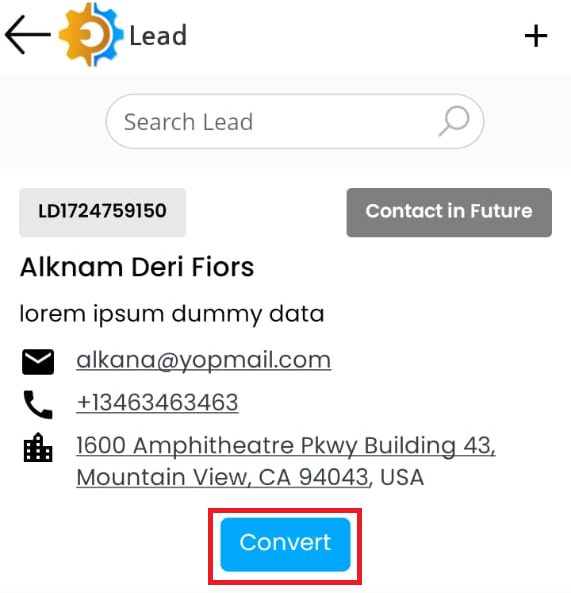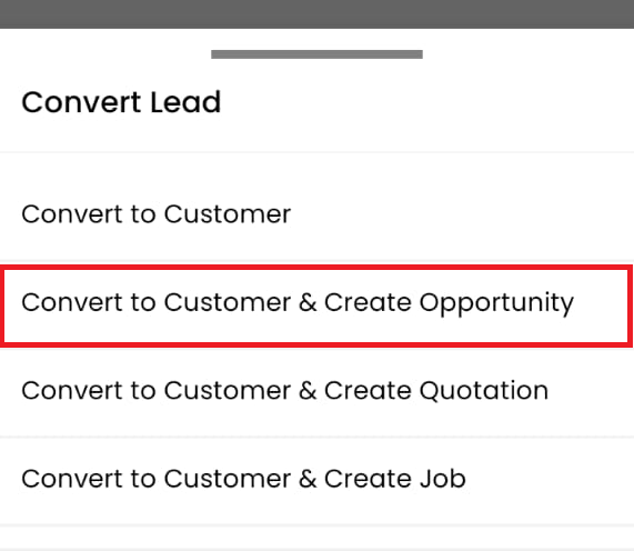 It will open up a popup with multiple option like Convert to Customer, Convert to customer & Create Opportunity, Convert to Customer & Create Quotation and Convert to Customer & Create Job