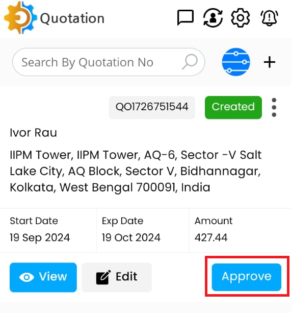 Tap on Approve button to approve the quotation