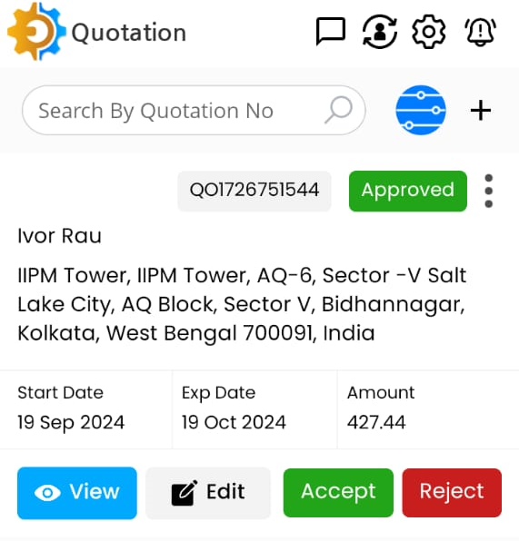 Tap on Accept / Reject button to complete the quotation