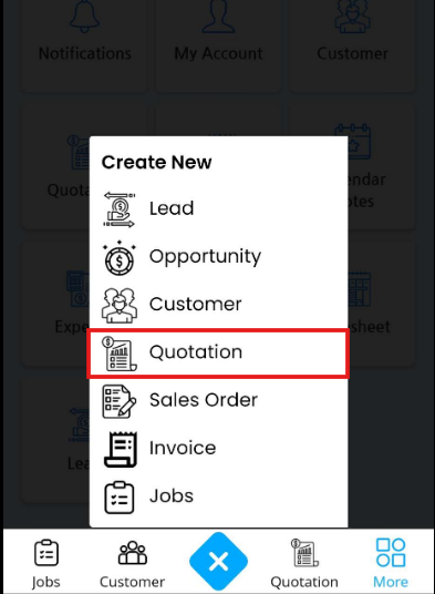 DreamzCMMS mobile app has two options to create a quotation.