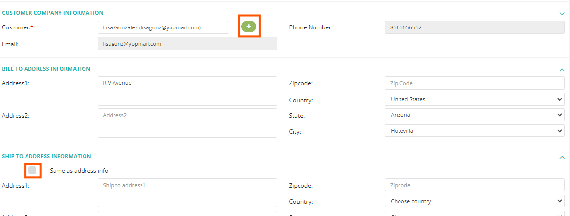 Bill to address will be automatically filled up with existing customer data or you can fill the address
