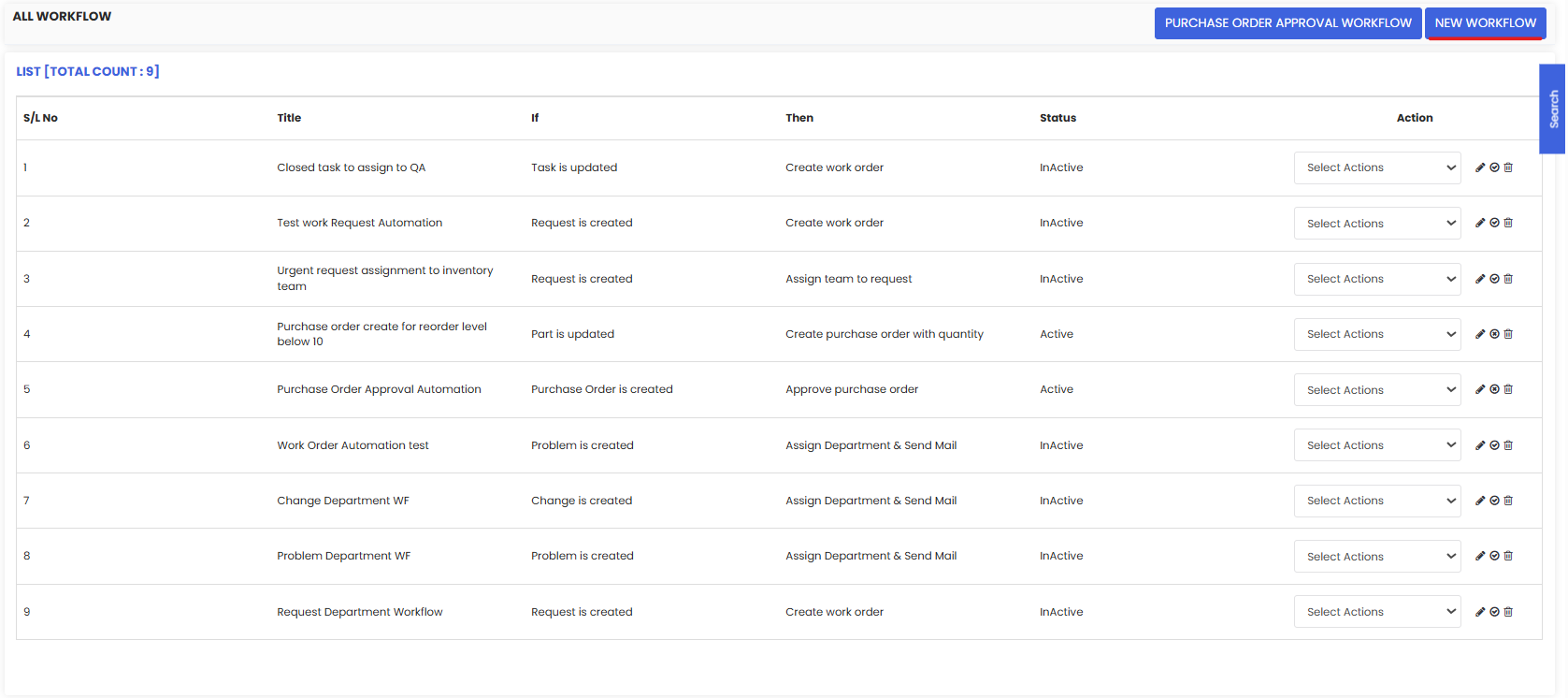From the main menu, click Workflow Automation. This opens the automation listing page showing all existing rules.