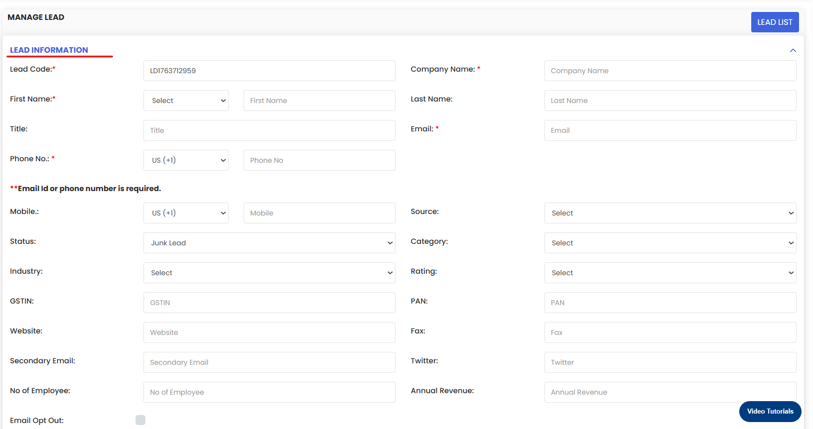 3. Now here you need to fill in the necessary lead details and click on Save.