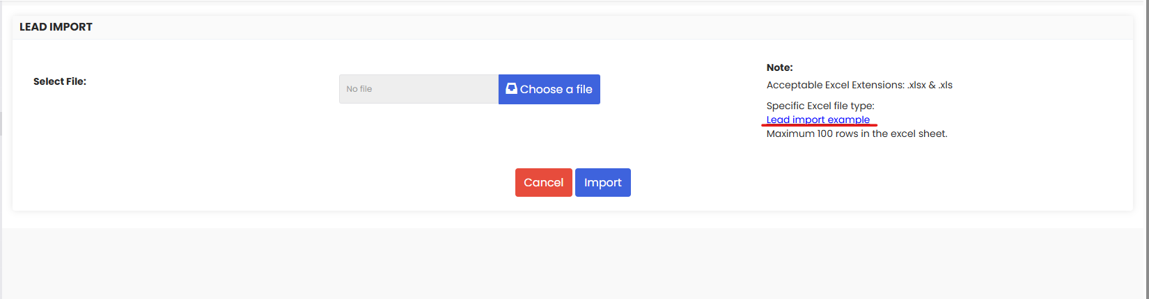 3. Here on the import page you will find a sample file link which you can download. You need to set your lead data based on the downloaded sample file.