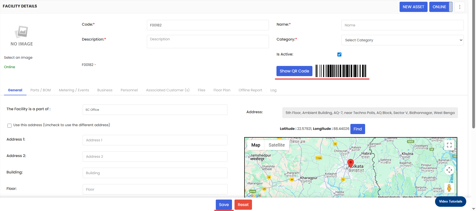 Fill in the necessary details for the location. You can see that a barcode and QR code is automatically generated which can be used later on. Once you are done filling up all the details, click on the Save button.