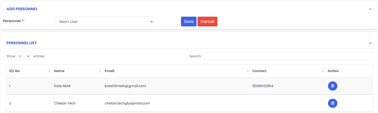 3. Verify they appear in Personnel List. To remove, use the trash icon.