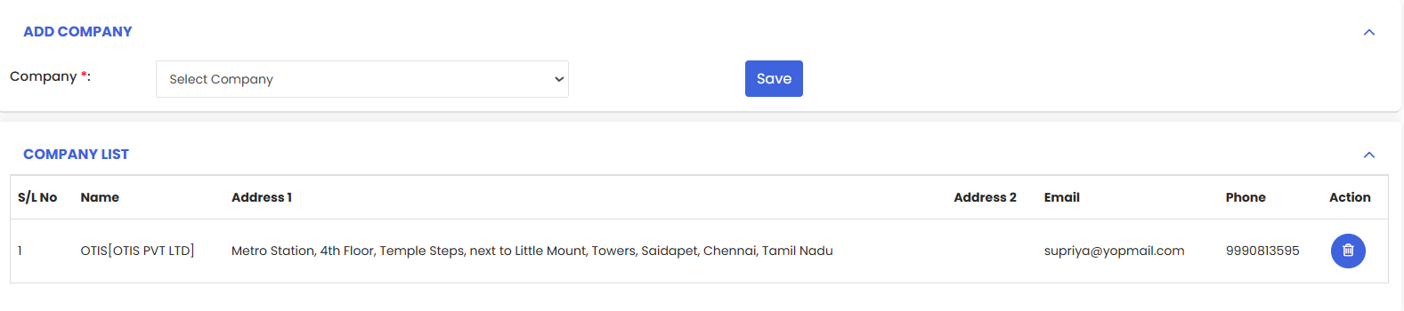 2. Verify it appears in Company List. Use the trash icon to remove.