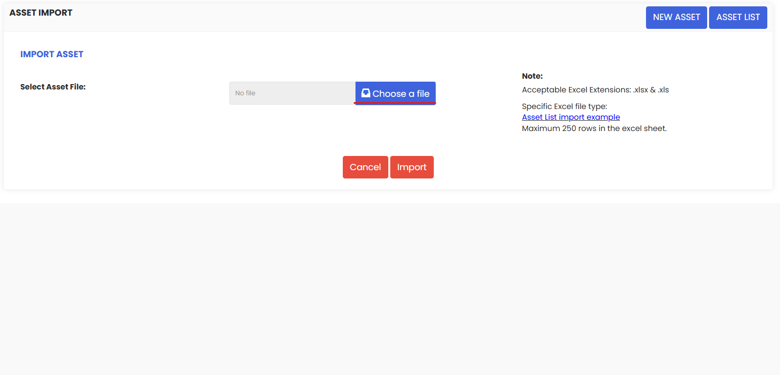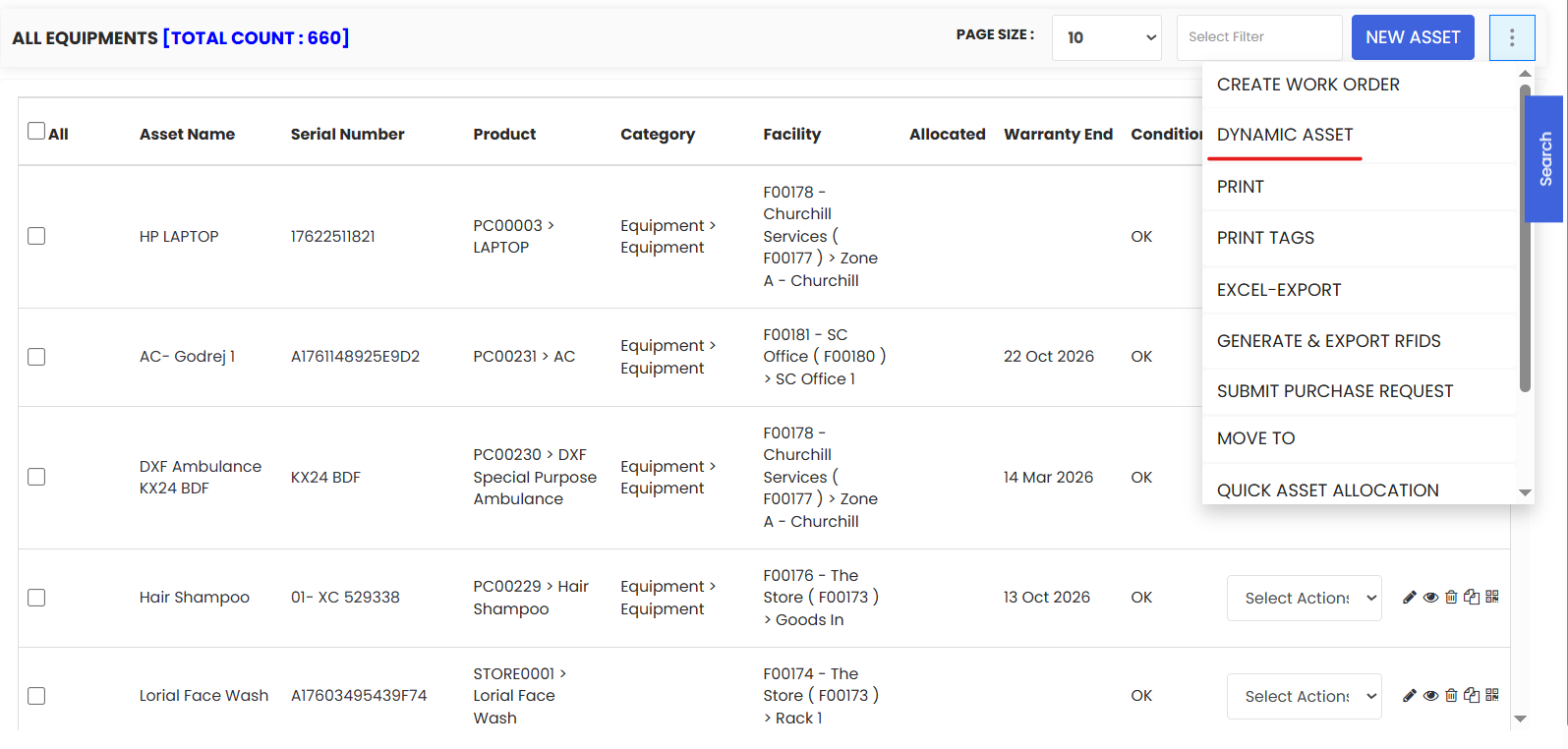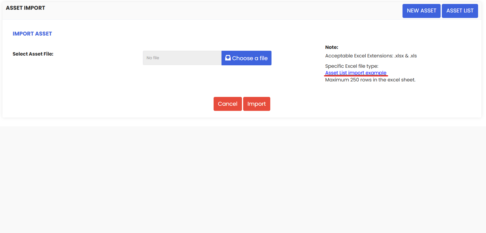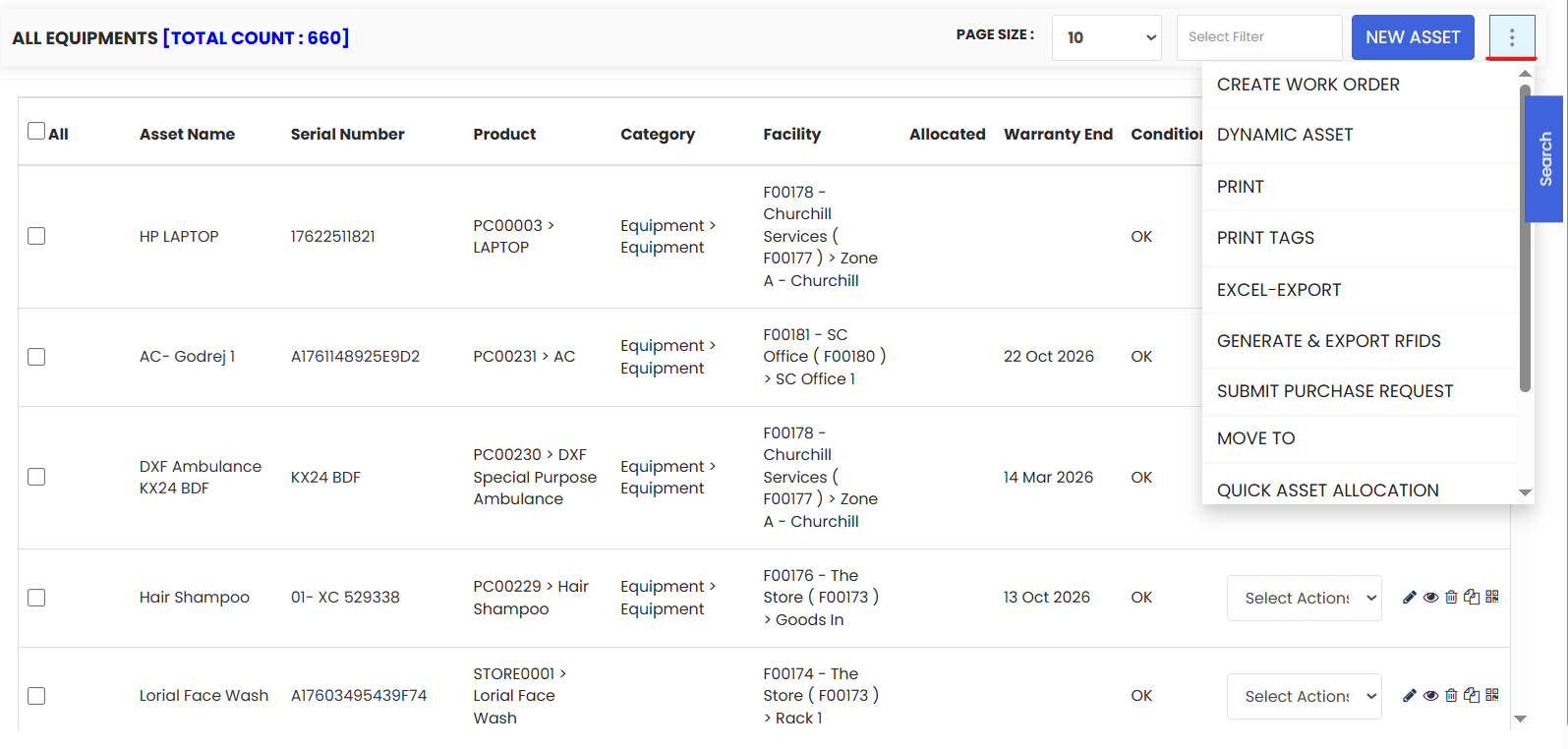 If you already have a list of equipment which you need to put in the system then you can do that easily by importing the file to the system.