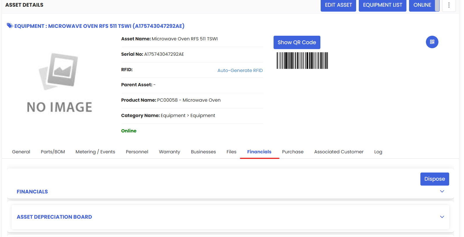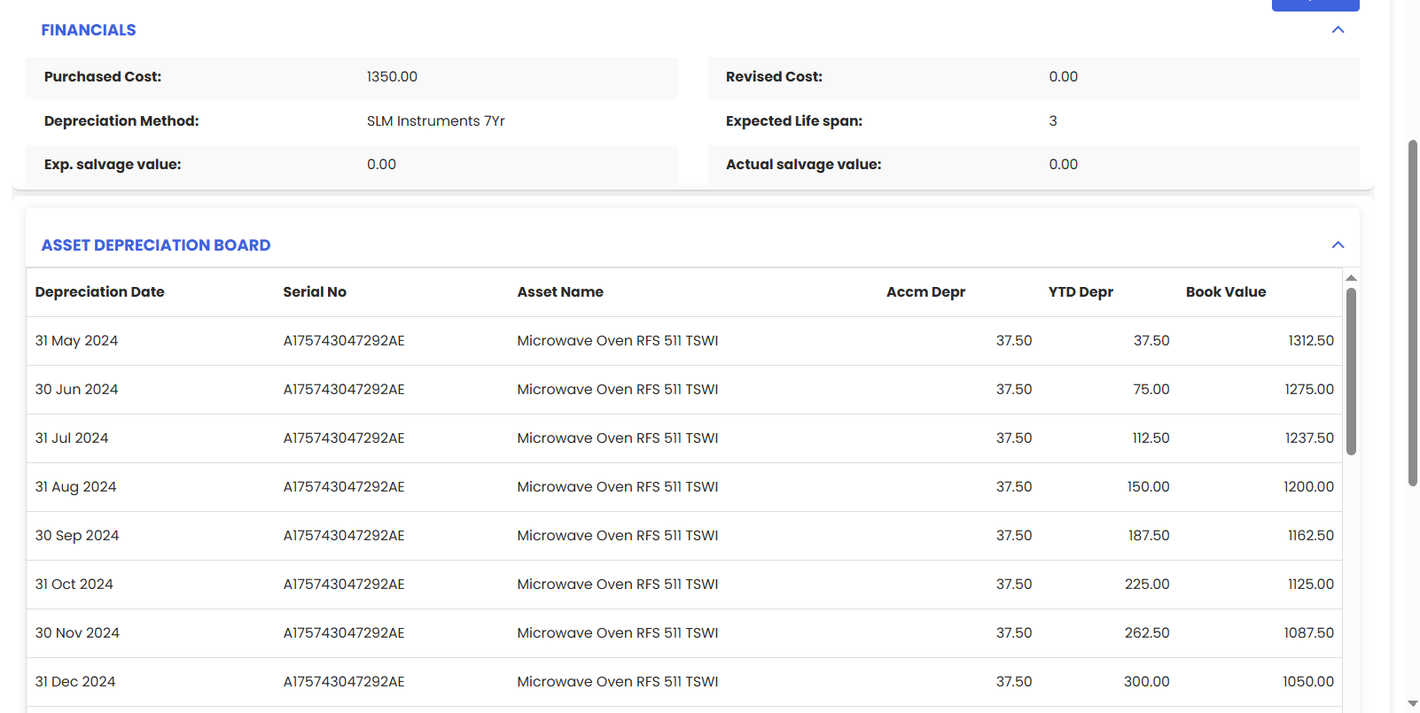 Click on the Asset Depreciation Board to see the date wise depreciated cost records