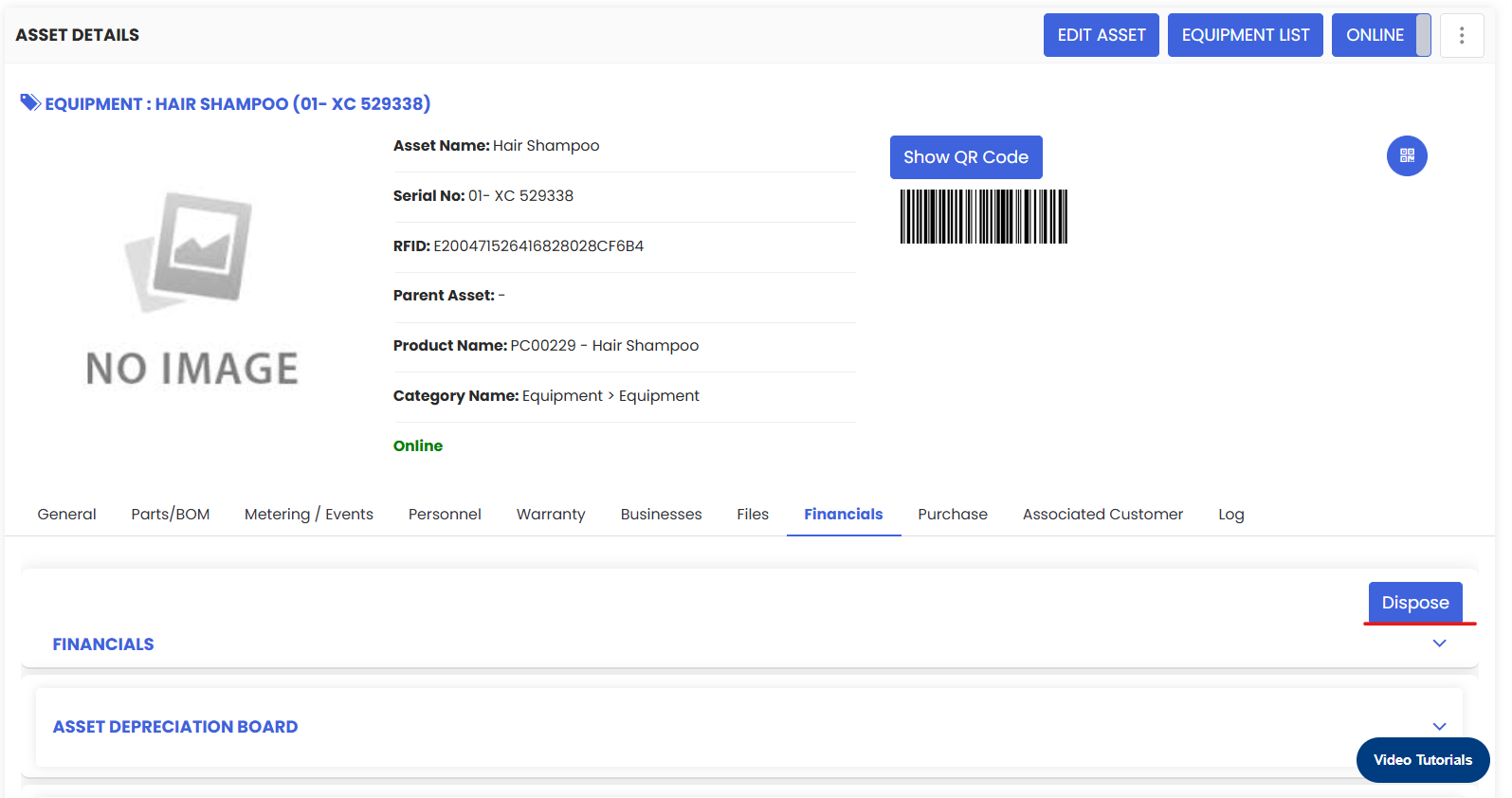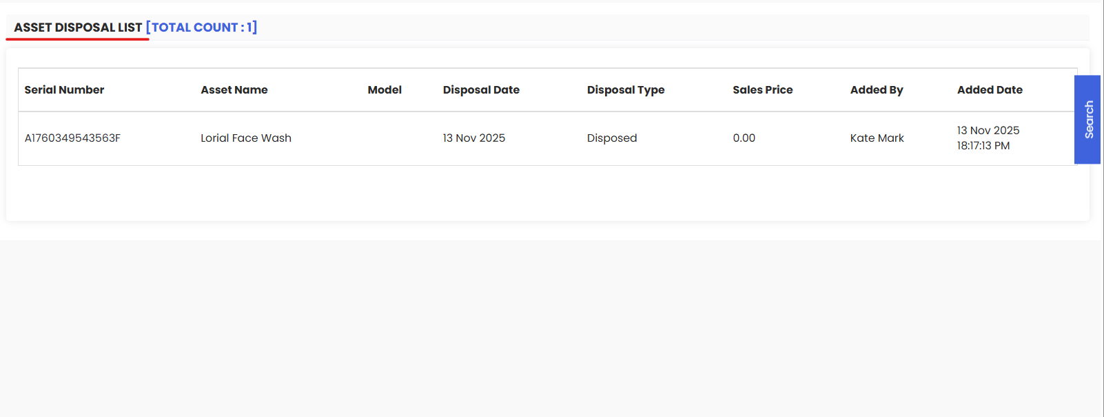 5. Upon saving, you will find that asset under the Disposal List option present on the menu.