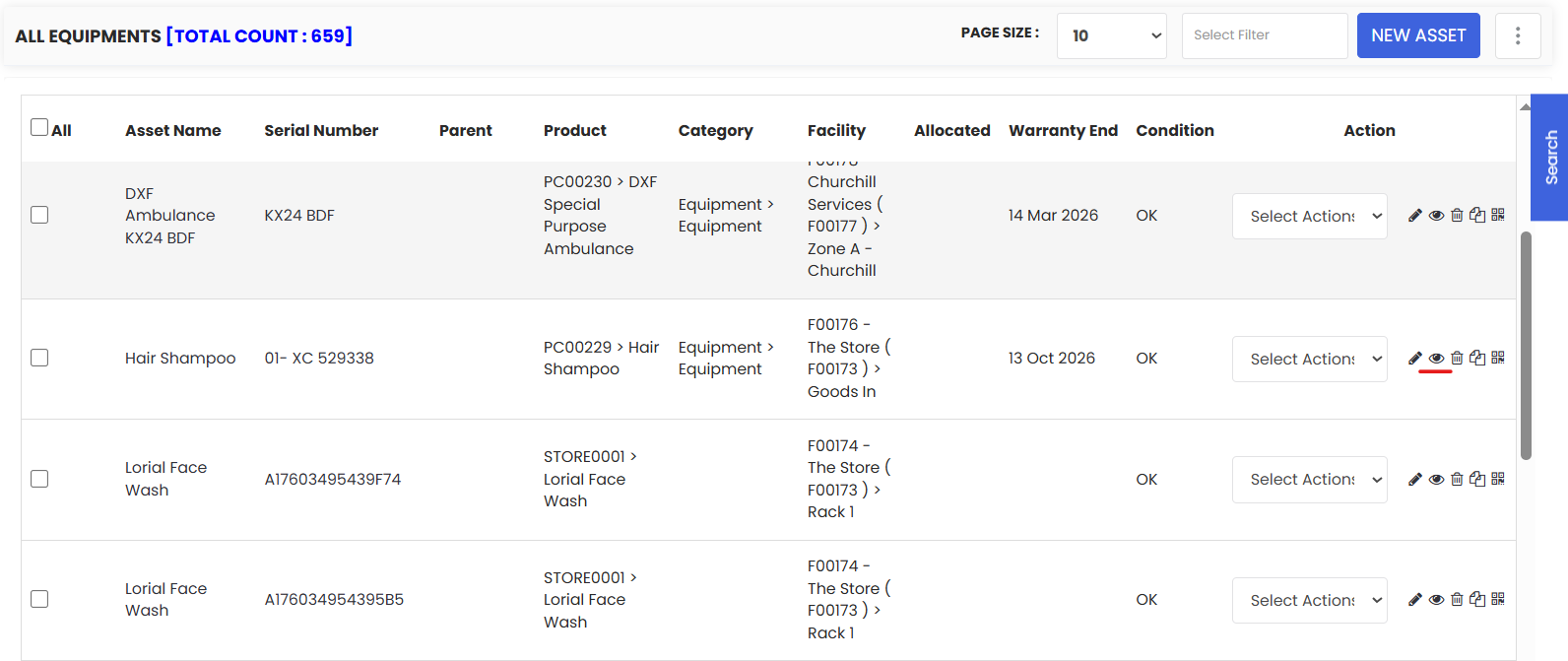 2. From the list choose the equipment that you want to dispose and then click on View.