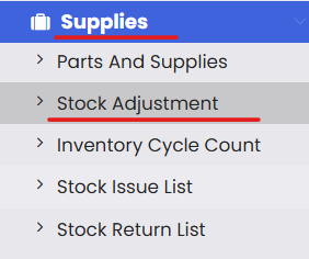 Navigate to the "Stock Adjustment" menu under Supplies on the left-hand menu.