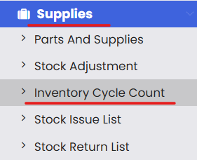 Navigate to the "Inventory Cycle Count" on the left-hand menu under Supplies.