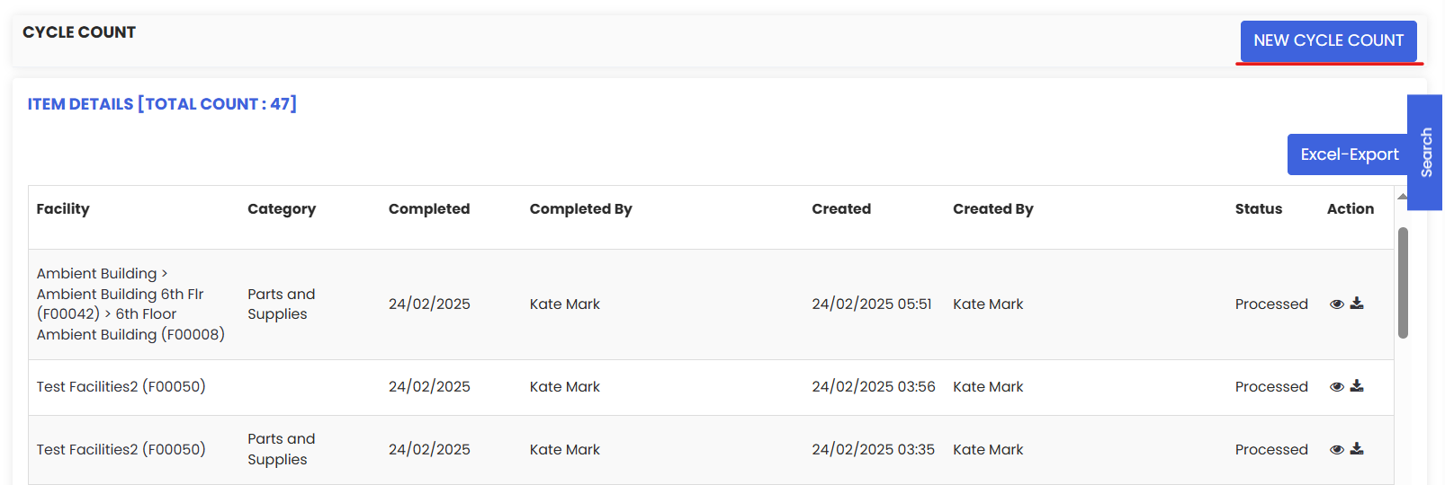 Click on the button “New Cycle Count” on the right hand top corner of the above screen for a new cycle count of your inventory.