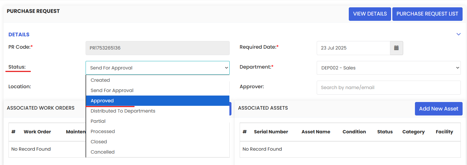 Type the asset code or asset name (atleast 3 characters) to get a list of suggested items to select. If similar item present but not allocated then it will show a message