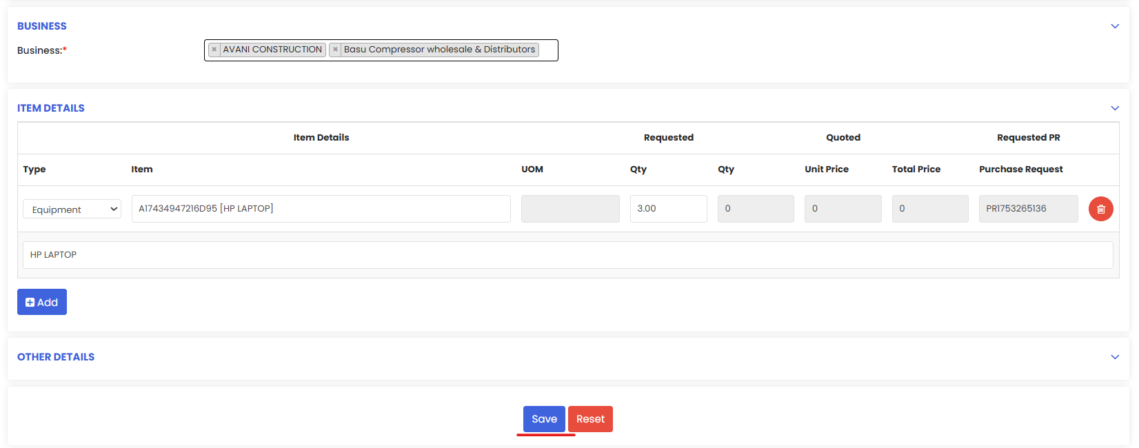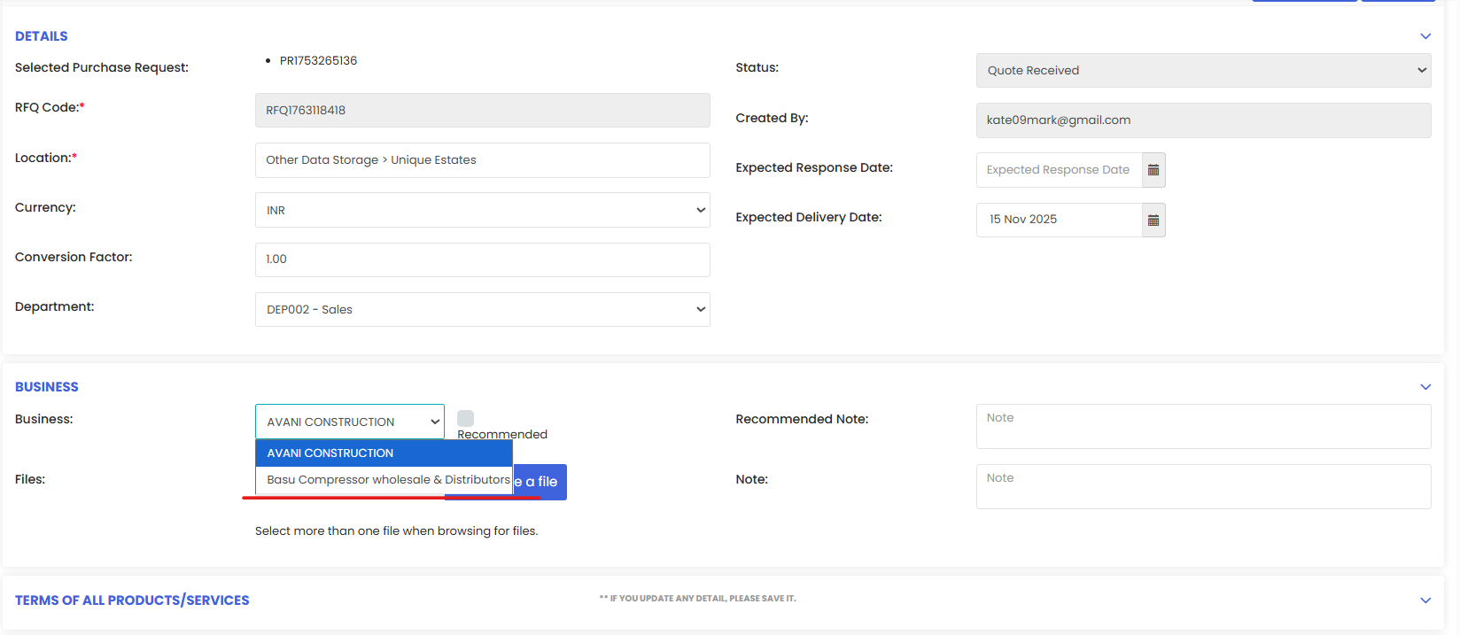 Select as to you want to choose which item for which Business. You can choose one vendor for all items or separate vendors for separate items.