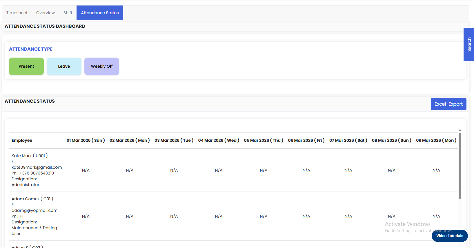 - Use the Shift tab to keep employee shift mappings up to date — accurate shift data ensures the Attendance Status dashboard reflects correct Present, Leave, and Weekly Off records.