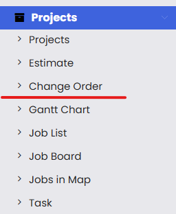 From the left-hand menu, click on Projects and then select Change Order to open the Change Order List page.