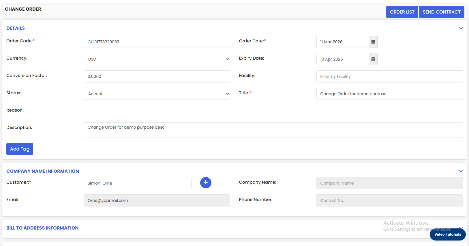- Convert to Invoice – Generate an invoice directly from the change order.