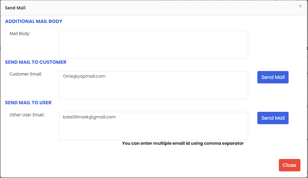 To send the change order to a customer or colleague by email, click the Email option. Enter the recipient's email address, write a custom message in the mail body, and click Send Mail. The email will be delivered to the recipient's inbox.