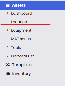 From the left-hand side menu, click on Assets and then select Location to open the Location page.