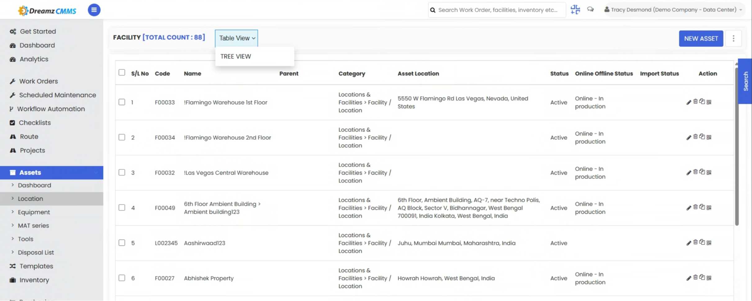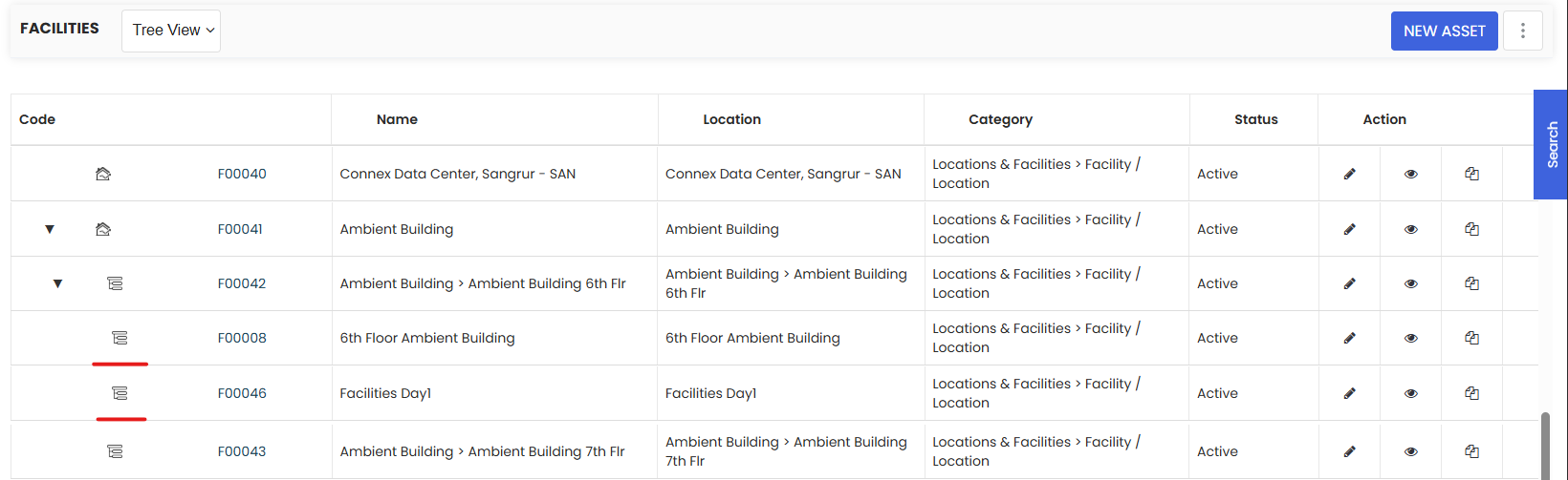 - Use the Tree View whenever you need to understand the full structure of your asset location hierarchy — it is much easier to navigate than the Table View when you have multiple levels of parent and sub-locations.