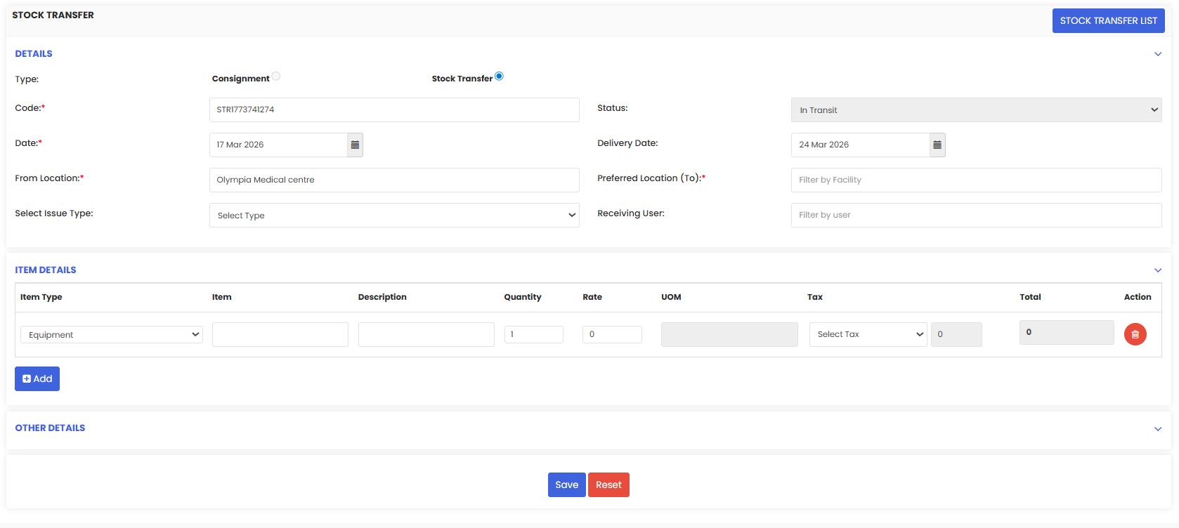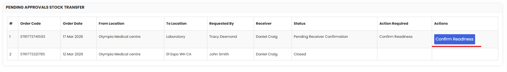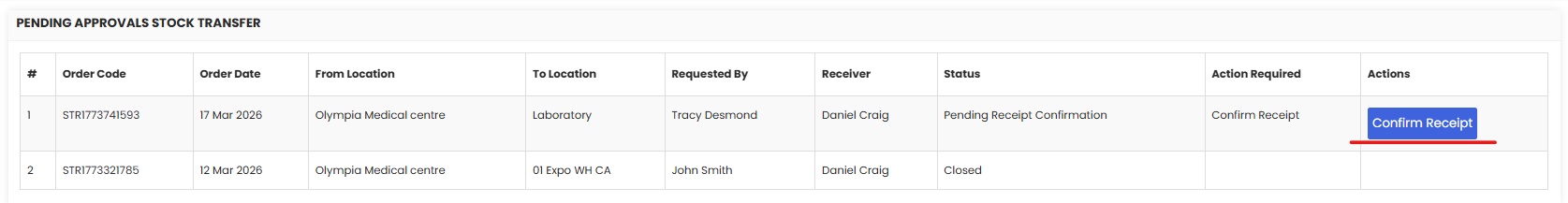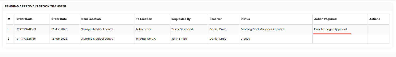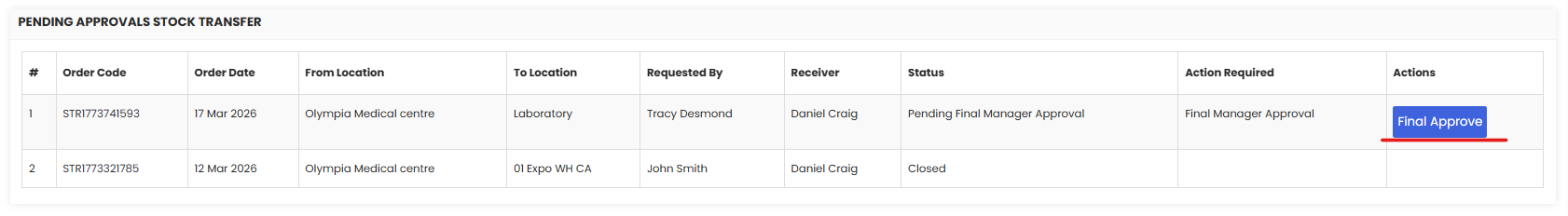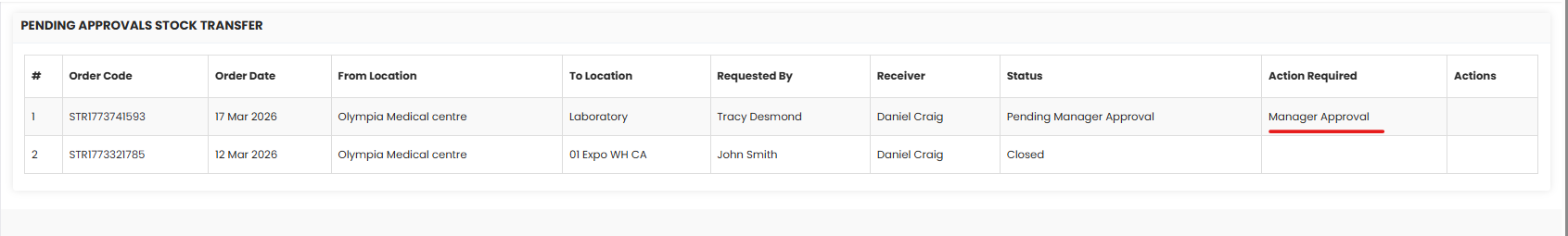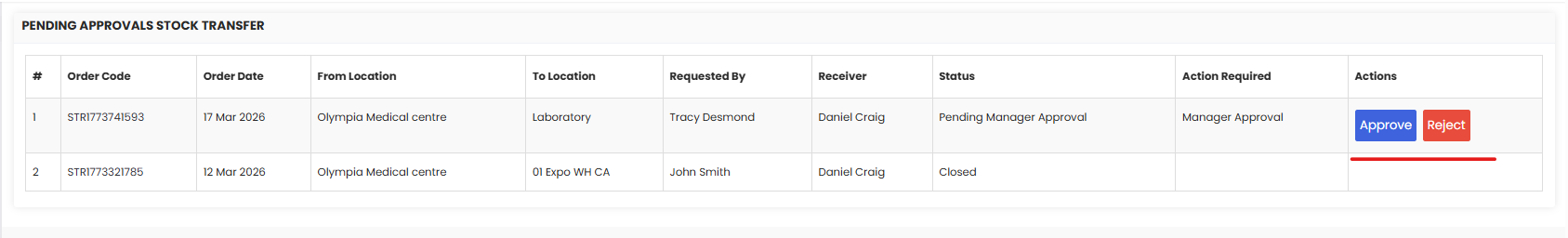 Stock transfers in DreamzCMMS follow a step-by-step approval process to ensure transparency and control. Each transfer goes through multiple stages including: