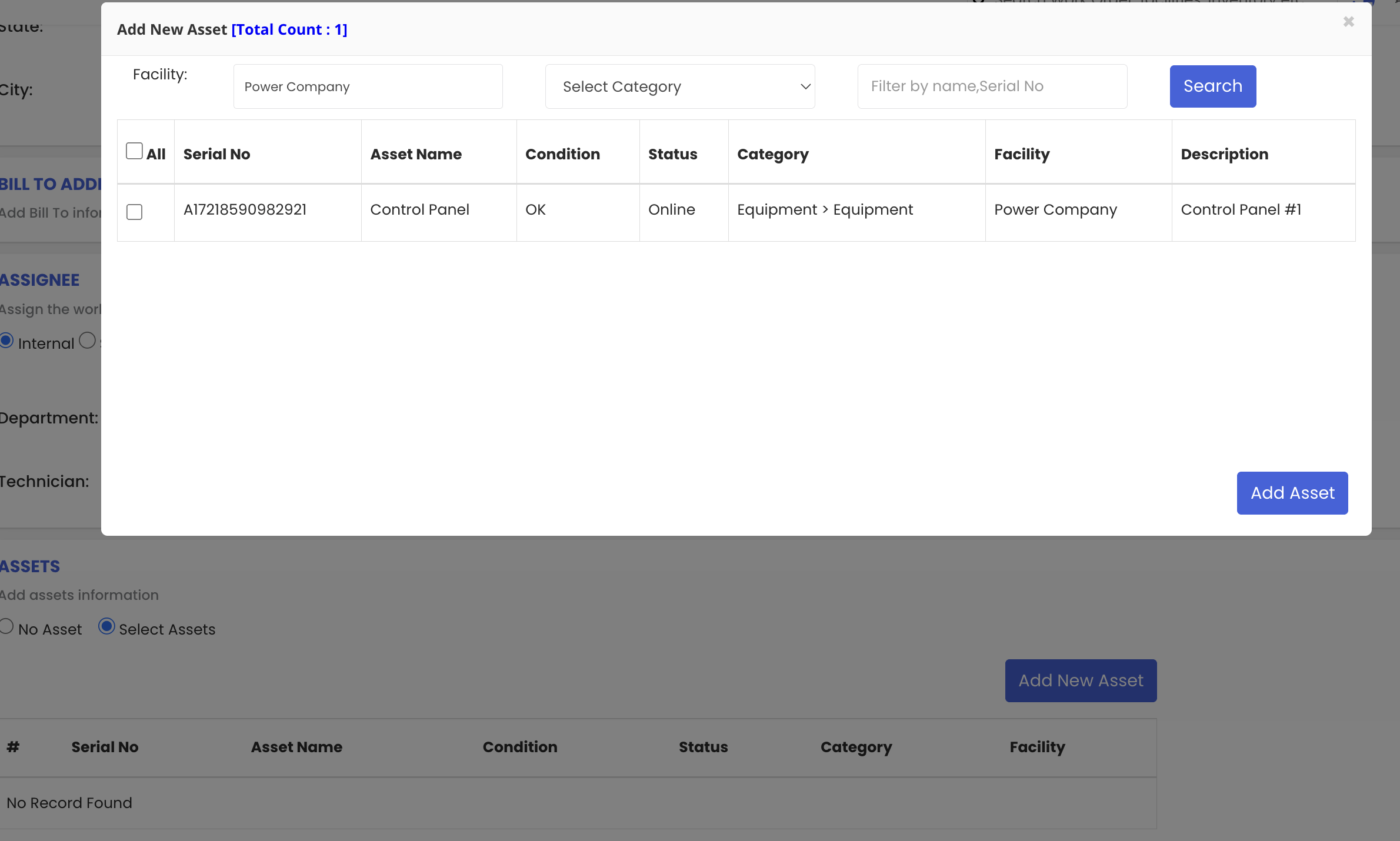 Go to the Assets section. The list of assets available for the selected location will be displayed. Select the required assets and add them to the scheduler.