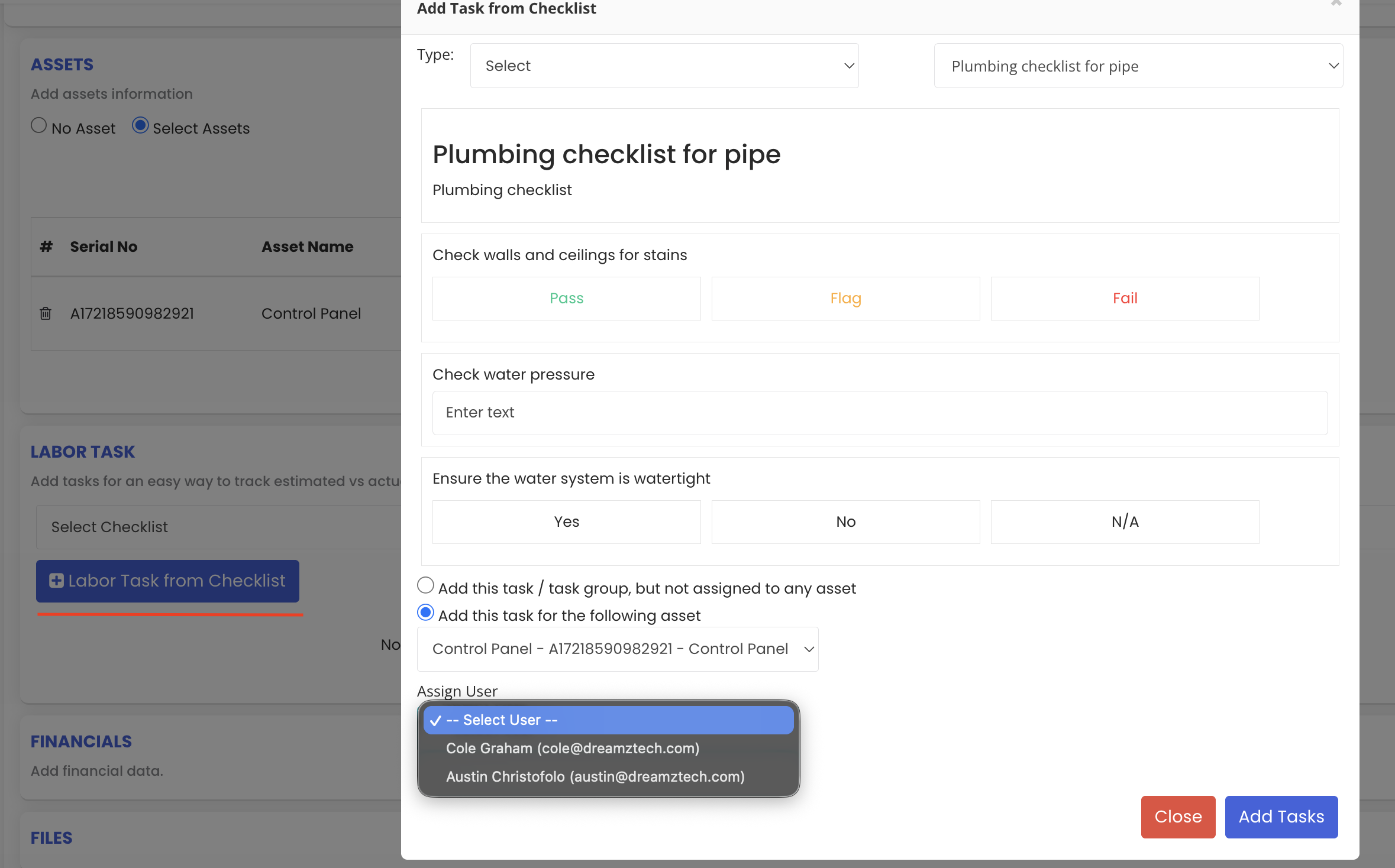 Yes. After adding assets and selecting a checklist in the Labour Task section, you can assign the checklist to individual assets and specific users from the assignee list.