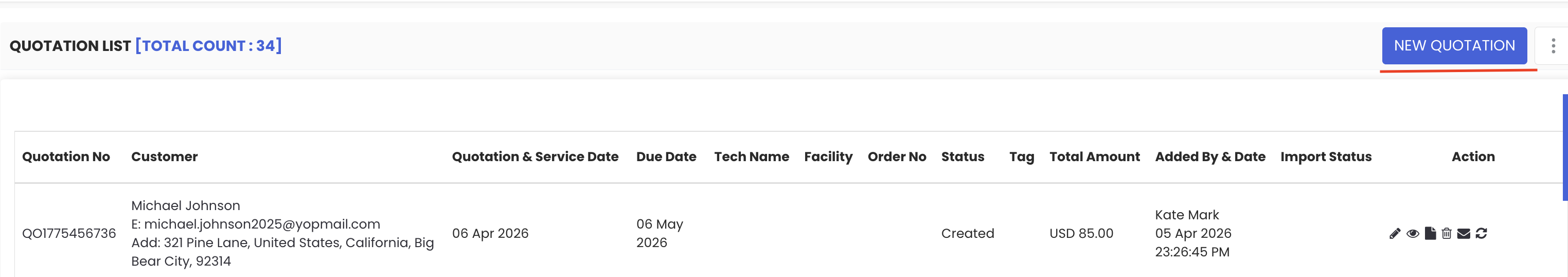Once all details are filled in, click "Save" to create the quotation. The quotation will be saved and appear in the quotation listing page.