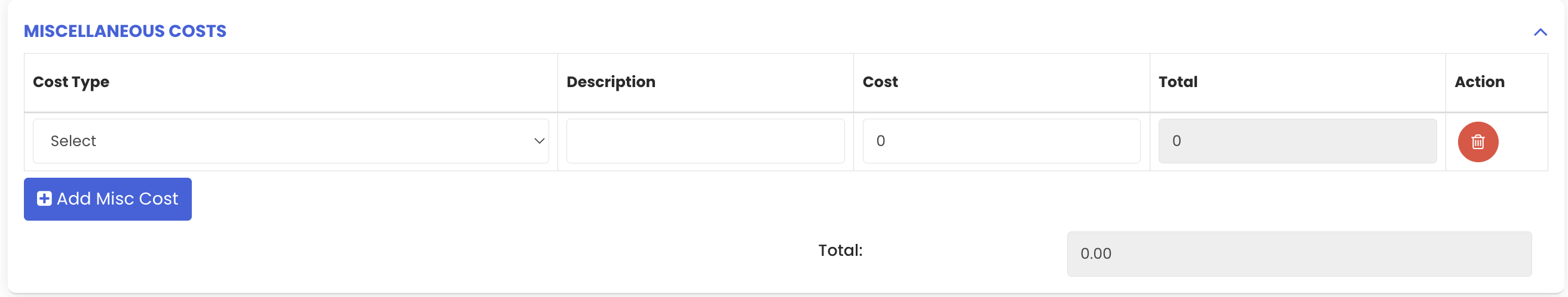 You can also include any miscellaneous costs associated with the rental (e.g. delivery charges or setup fees) by entering the relevant amount in the miscellaneous cost field.
