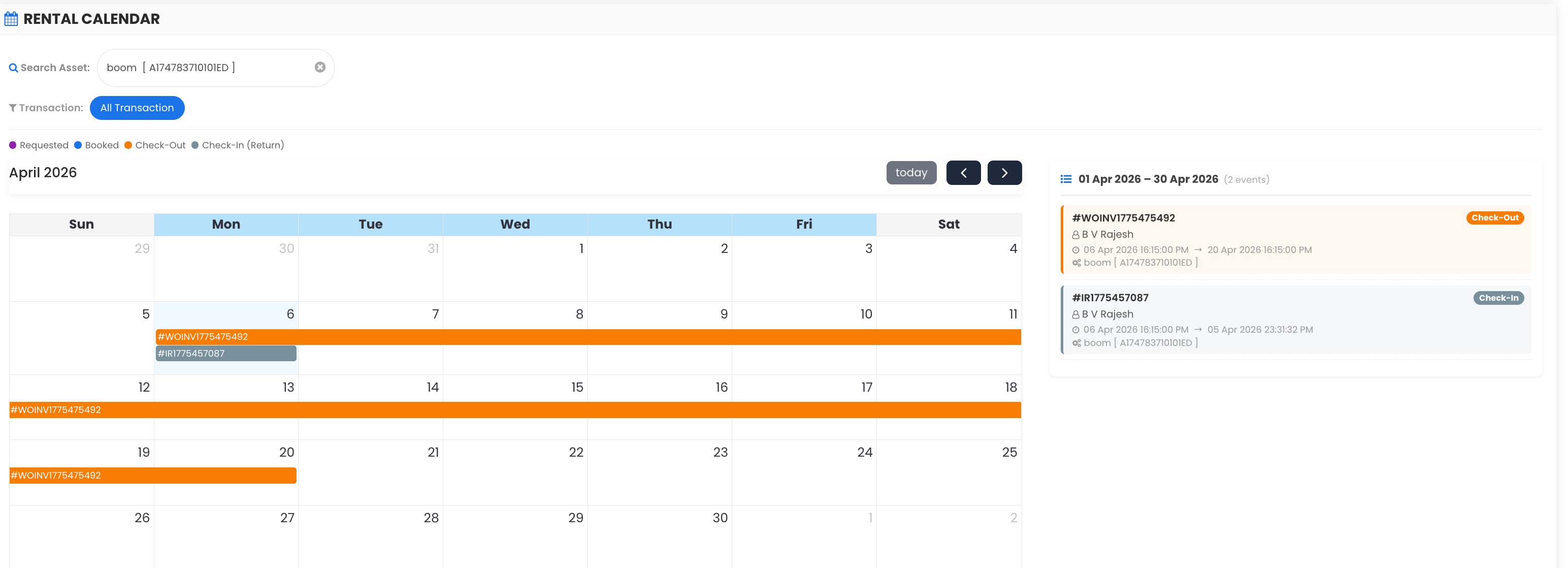 - Availability Calendar – Asset Rentals