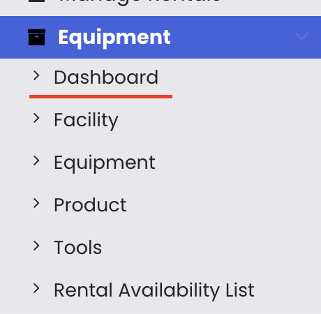 Click on Equipment from the left-hand menu, then select Dashboard. This will open the Equipment Dashboard with a complete overview of your asset fleet.