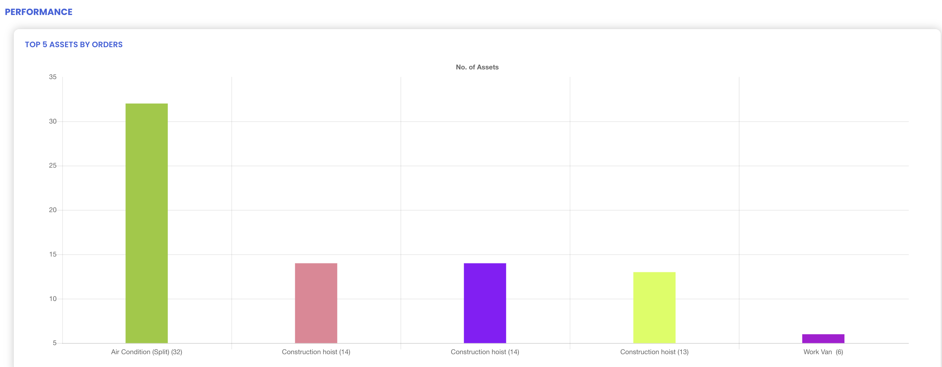- Monitor the top five asset performance section to identify your highest-performing assets and prioritise their maintenance and availability.