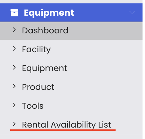 Click on Equipment from the left-hand menu, then go to Availability List and select Rental Availability List. This will open the full list of assets with their current rental status.