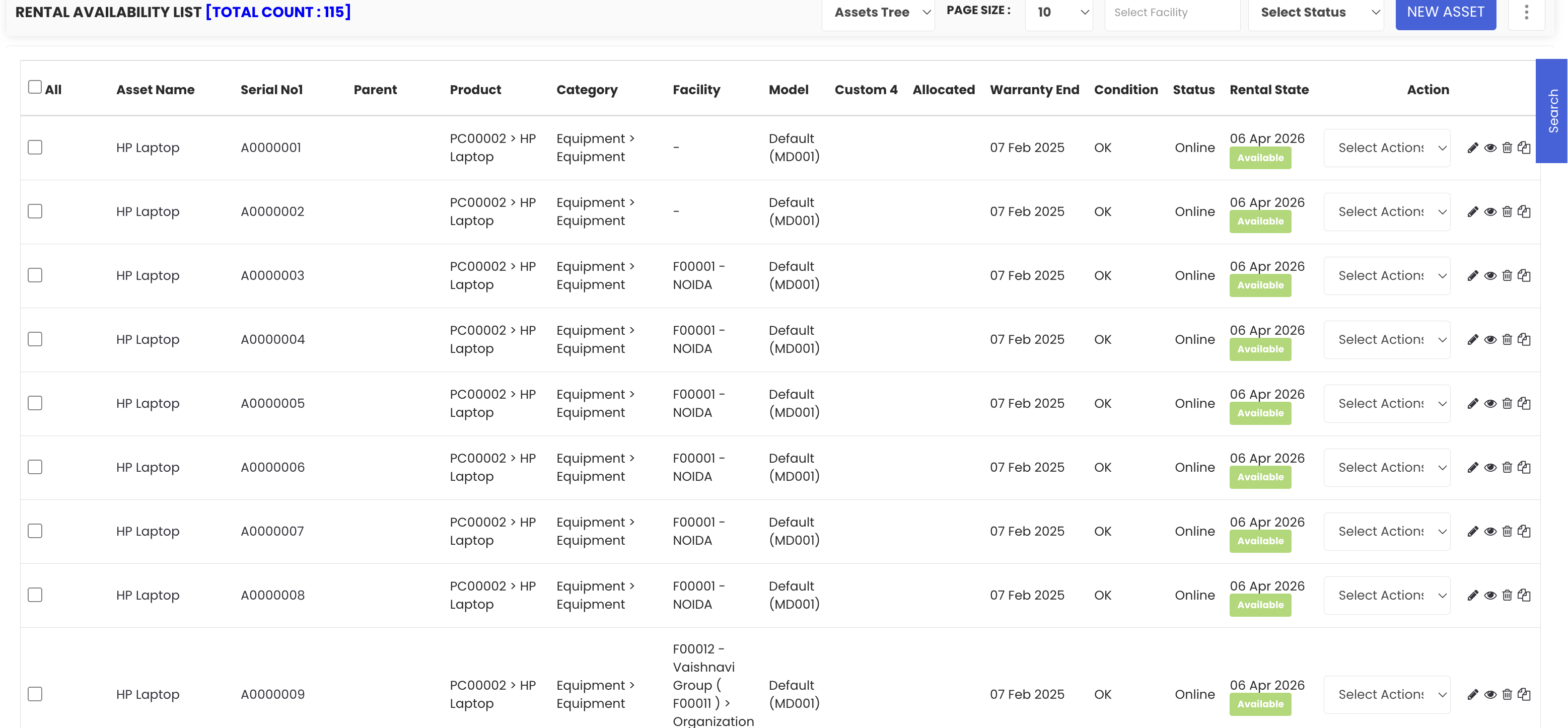 From the Rental Availability List, you can directly view or edit any asset record without navigating away from the list. Click on the relevant action option next to the asset to open its details or make updates as needed.