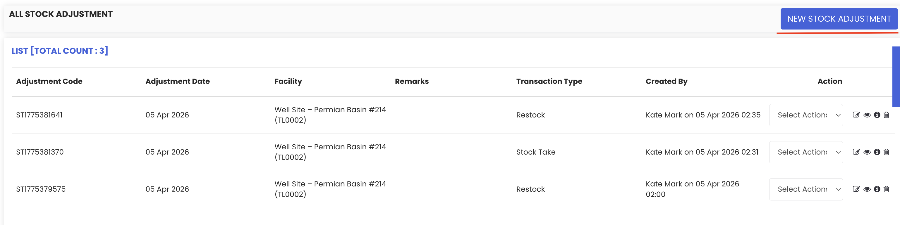 - View, edit, download, or delete adjustments from the stock adjustment listing page