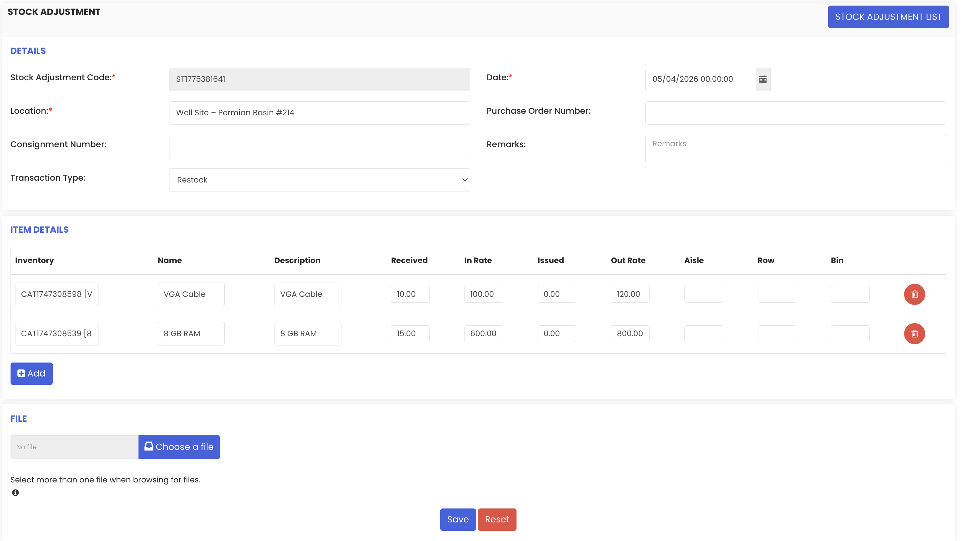 - Attach supporting files to each stock adjustment record