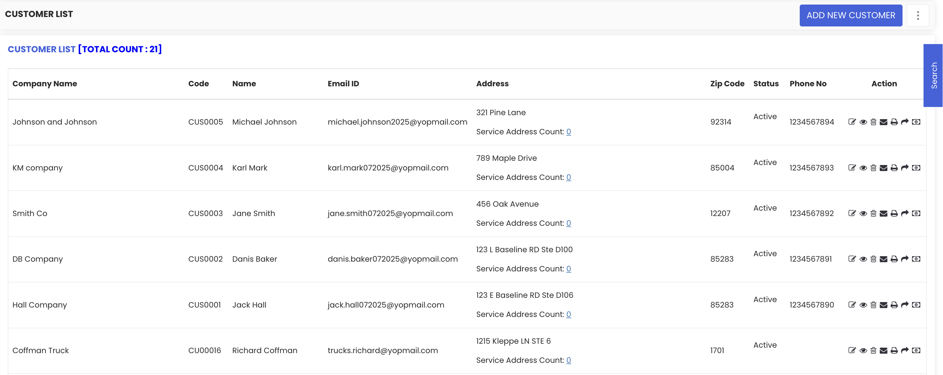 The Customers section in DreamzCMMS allows you to create and manage all your customer records in one place. From adding contact details and addresses to configuring account settings and granting customer portal access, the customer setup process is straightforward and comprehensive. Key highlights include: