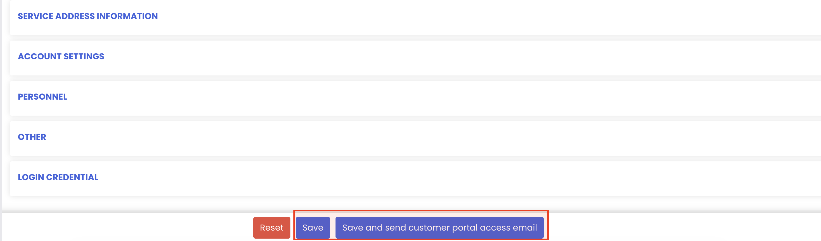 - Click "Save and Send Customer Portal Access Email" to save the record and automatically send the customer their login credentials via email