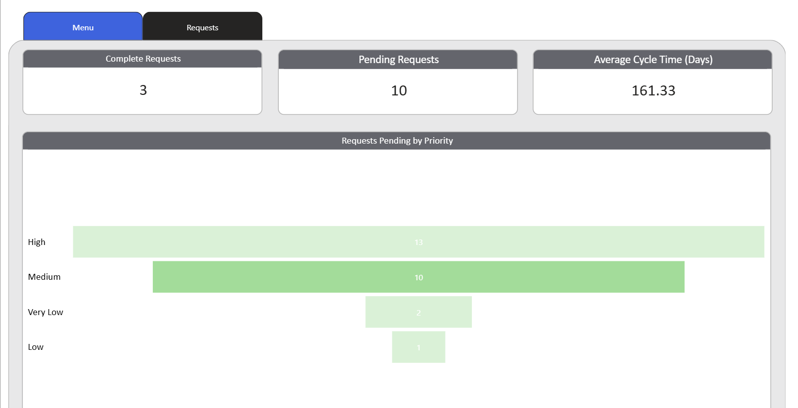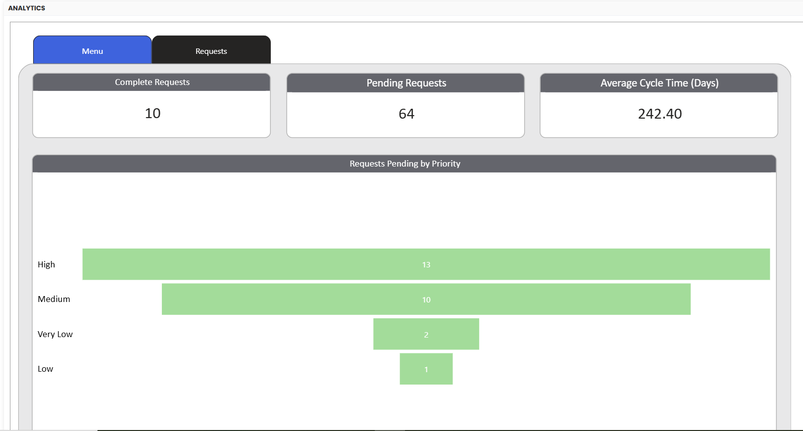 - Review the analytics regularly to monitor request volumes and statuses across your team and identify any bottlenecks or areas that require attention.