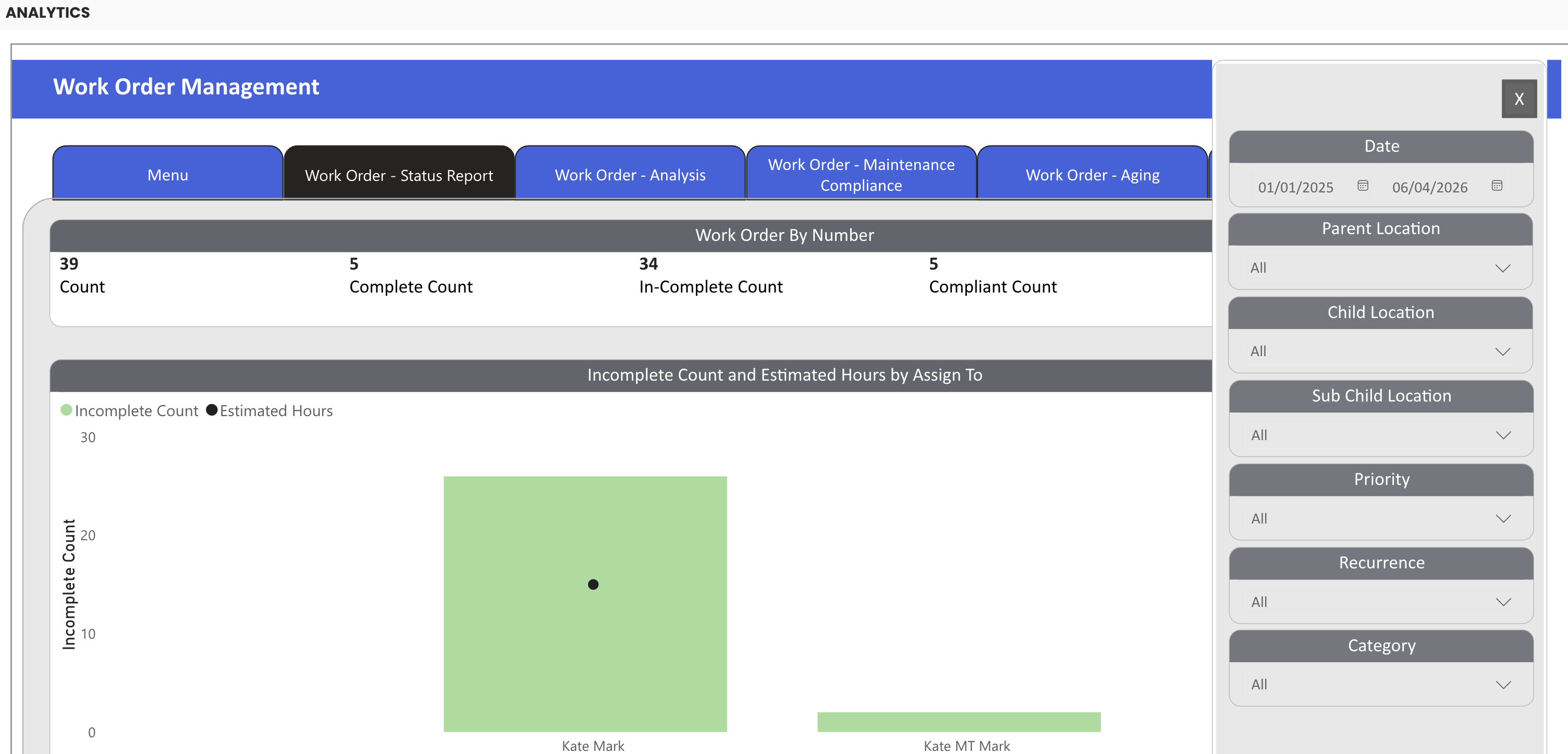 Check Work Orders Incomplete or Complete to get a clear breakdown of how many work orders have been finished versus those still in progress or pending.