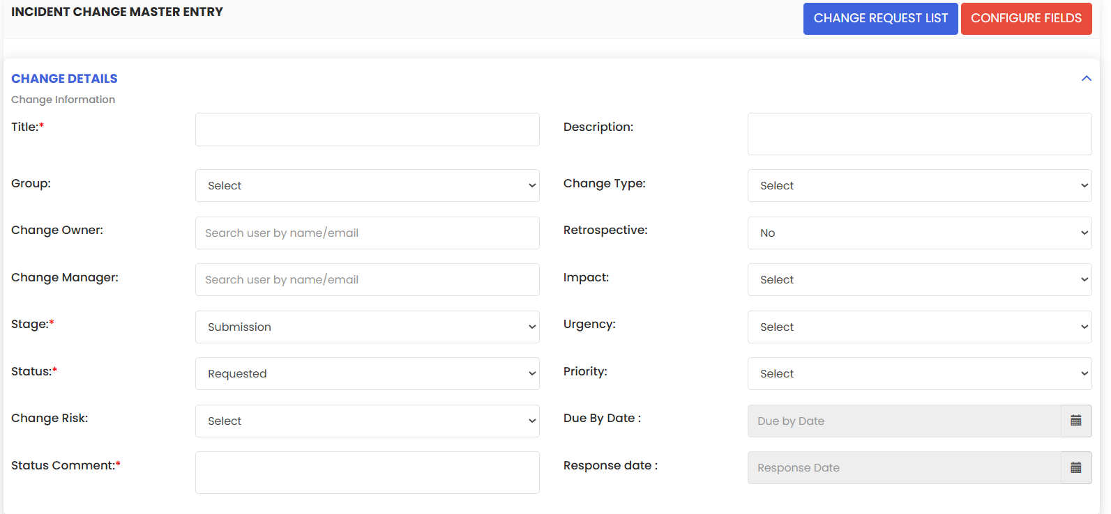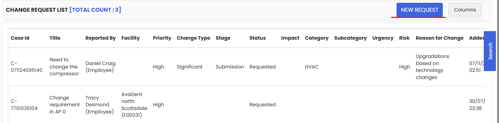 Any user with access to the Incidents module and appropriate permissions can create a Change Request from the Request Portal in DreamzCMMS.