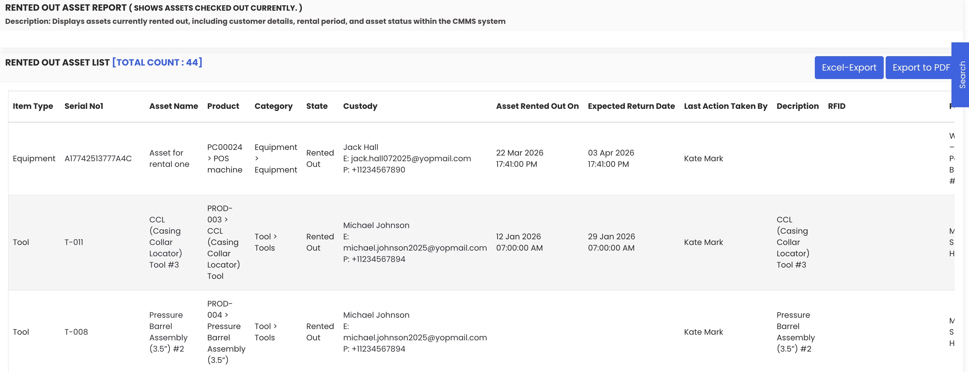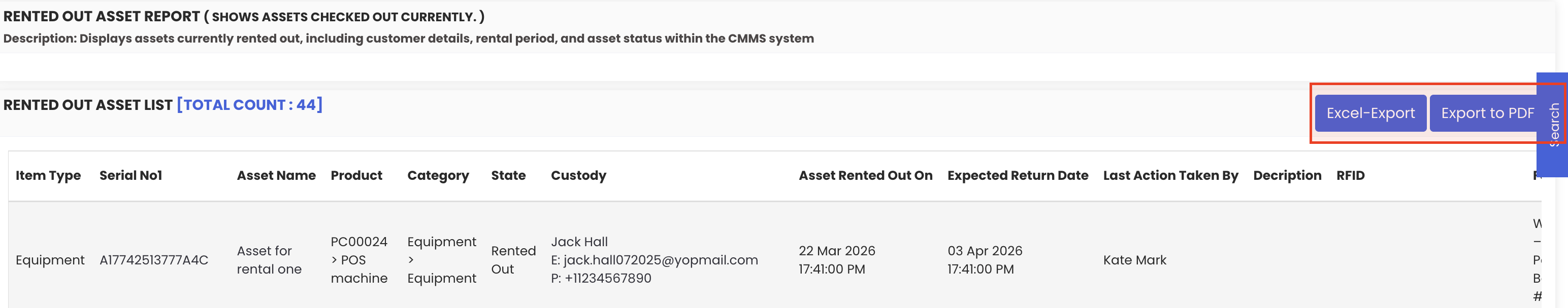 - Cross-reference this report with the Overdue Asset Report to identify any active rentals that have exceeded their expected return date.