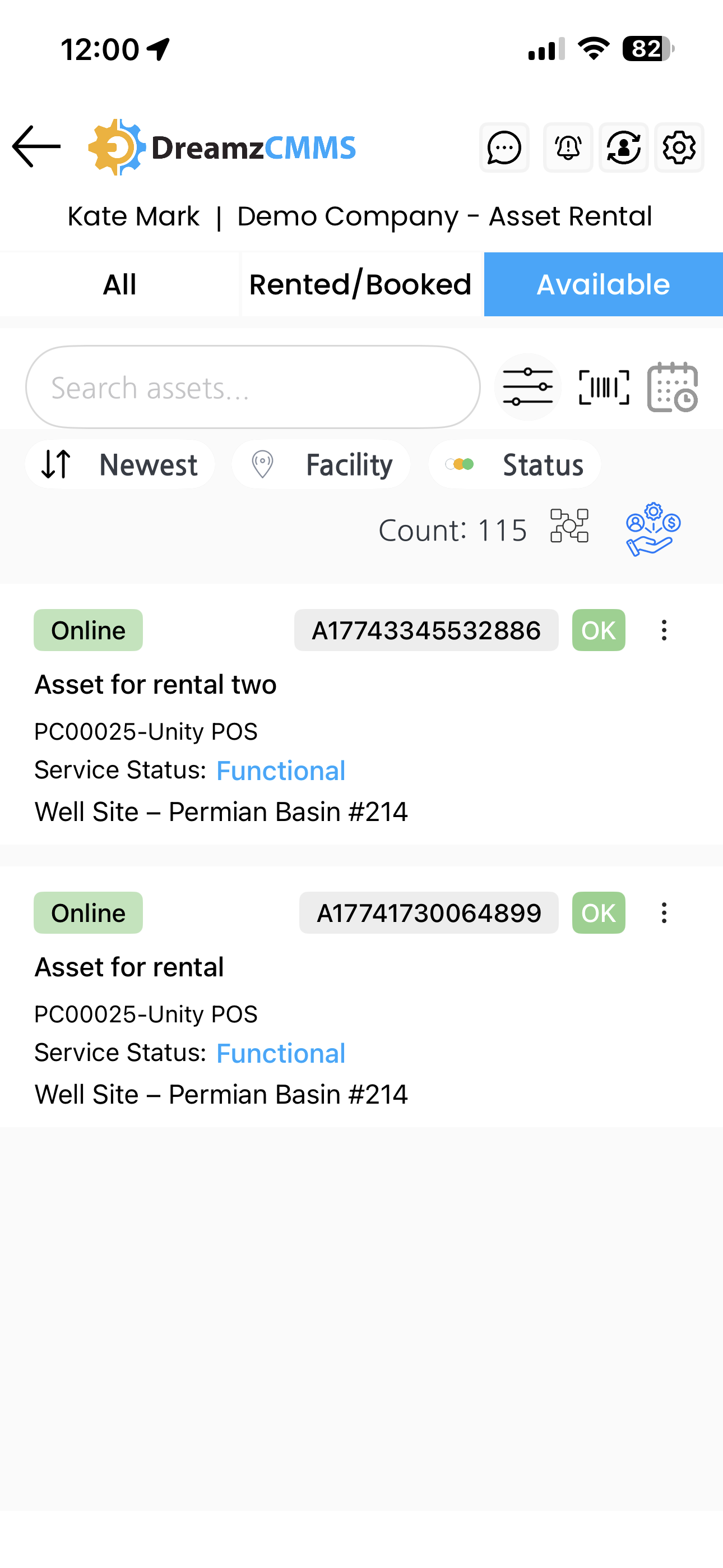 - View only Available assets to quickly identify what is ready for rental
