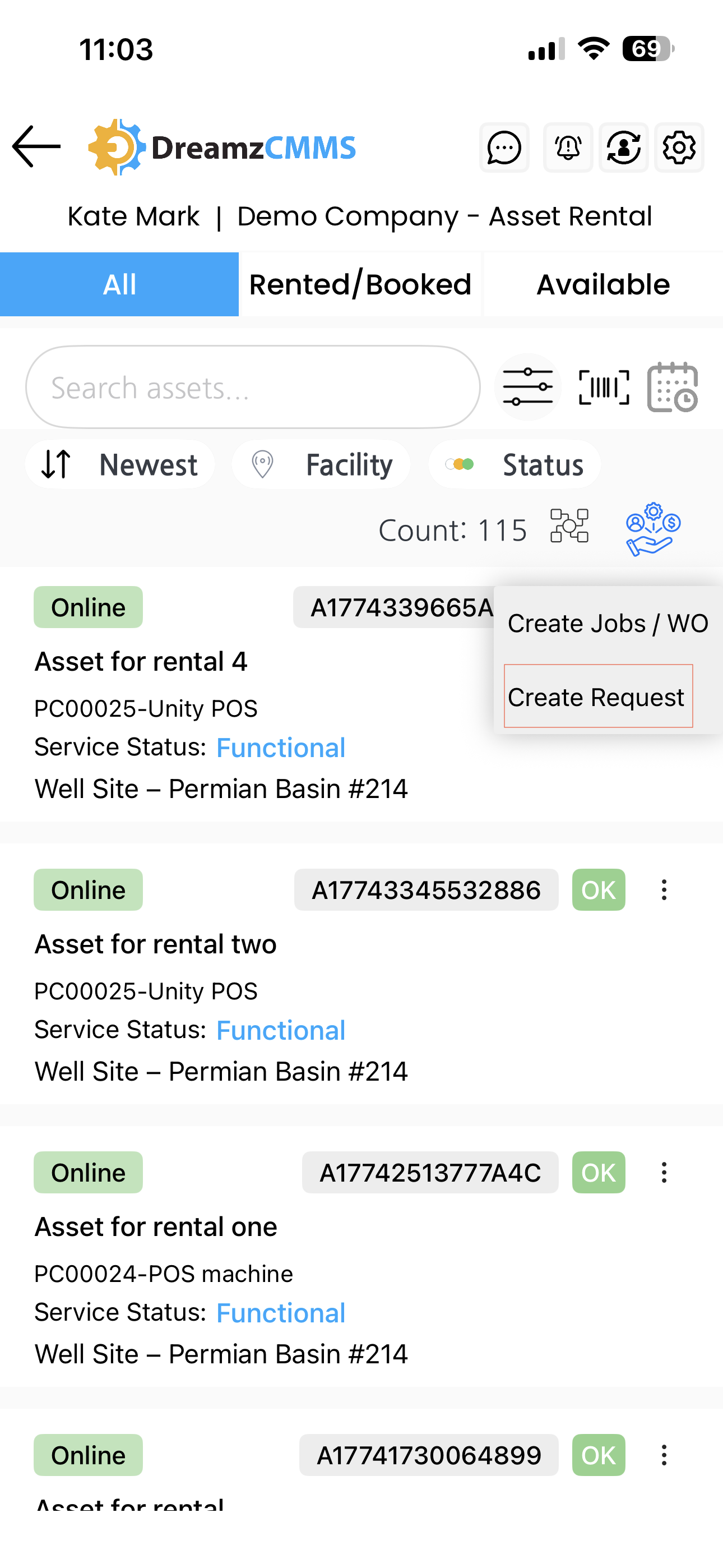 The DreamzCMMS mobile app allows you to create requests for rental assets directly from the Assets page. Whether you need more information about an asset, want to report an incident, or raise a service request, the process is quick and straightforward. Key highlights include: