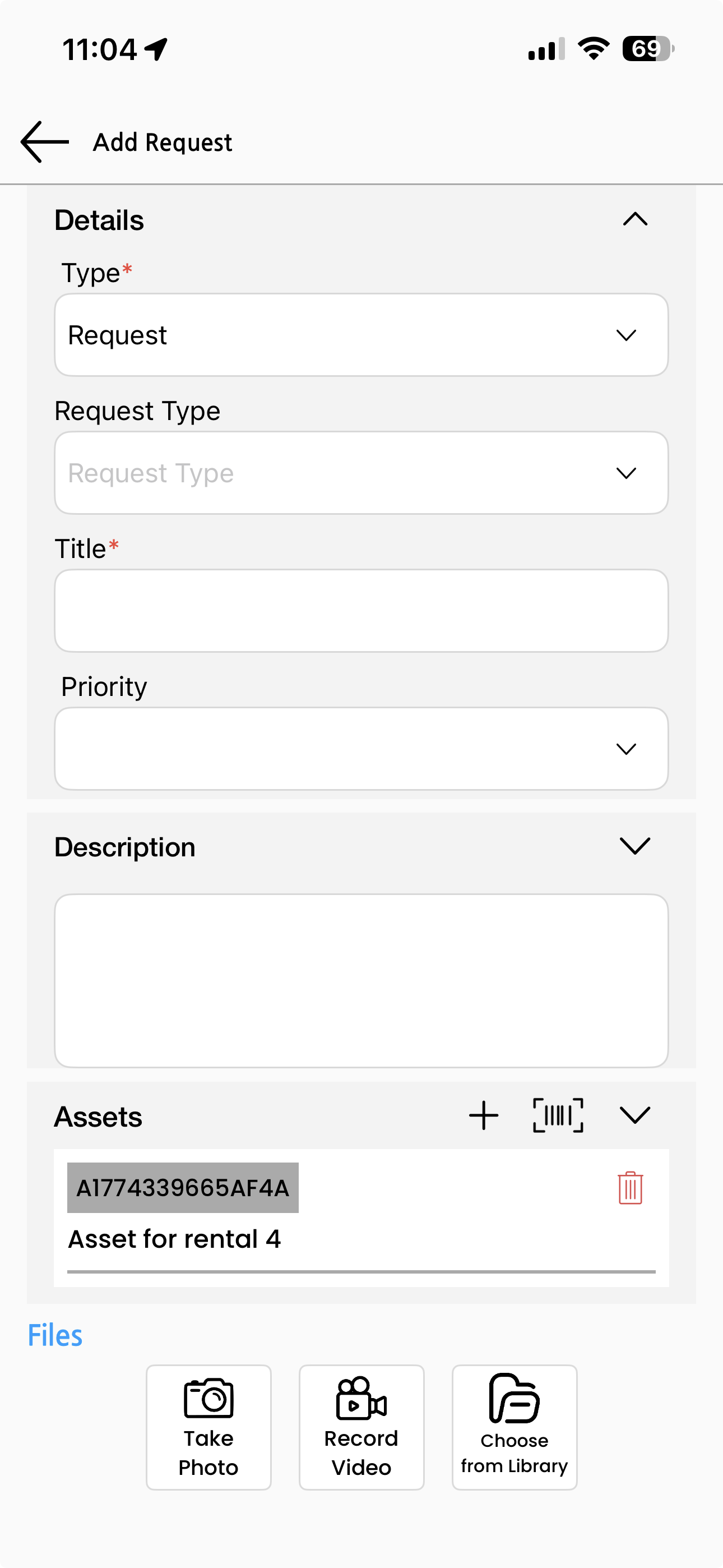 - If a request involves multiple assets, use the plus icon or QR scan to tag all relevant assets at the time of creation to keep the request complete and accurate.