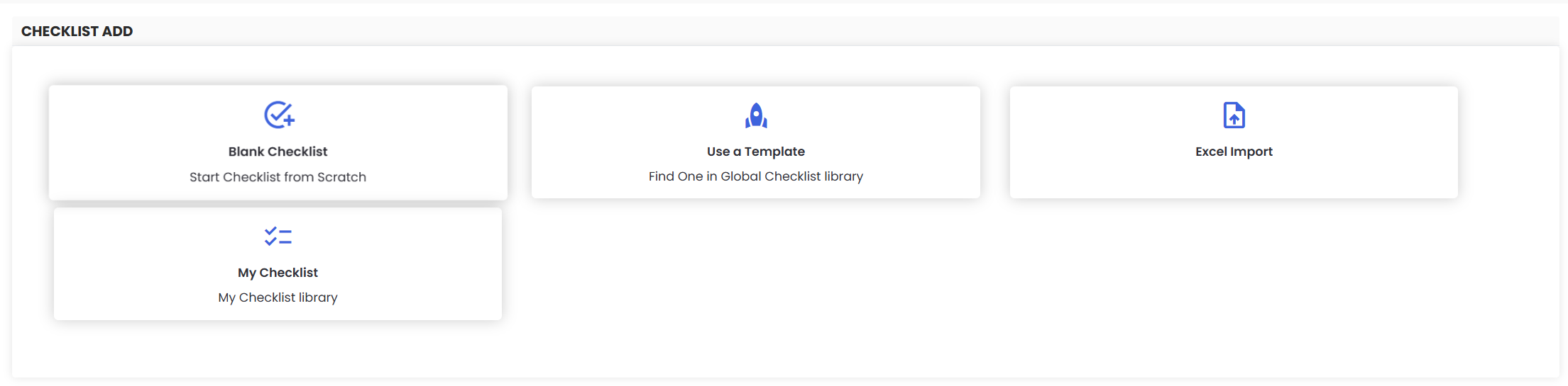A Blank Checklist allows you to build a checklist entirely from scratch with your own tasks and structure. A Template uses a pre-existing checklist from the Global Checklist Library as a starting point, saving time for common or recurring job types.