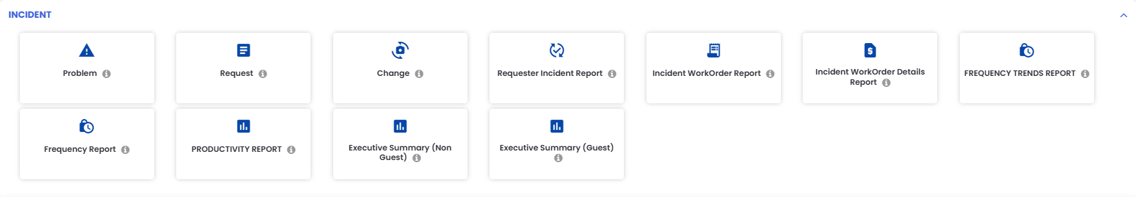 - Incident Work Order Report – Provides detailed information on each incident's work order, including who created it, its current status, the date, and whether it has been assigned.